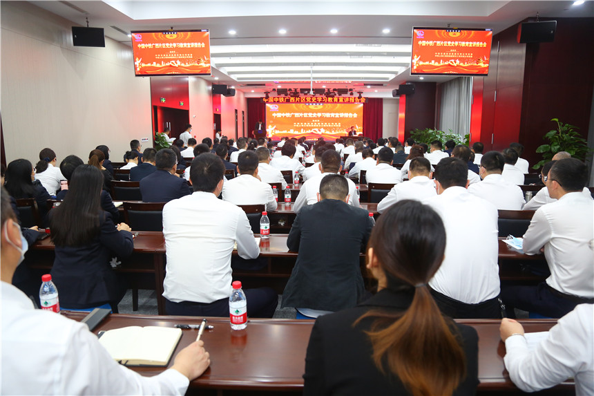 2021年4月9日,中铁交通党委牵头召开中国中铁广西片区党史学习教育宣讲报告会