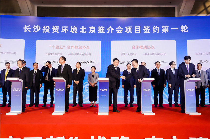 2021年5月22日,中国中铁总裁、党委副书记陈文健见证中国中铁与长沙市人民政府签订合作框架协议